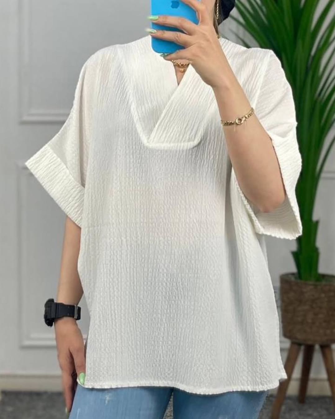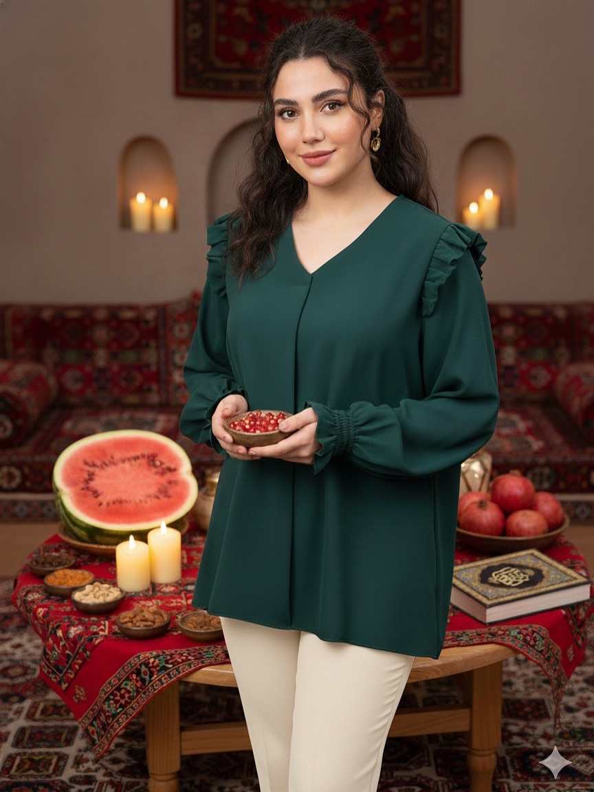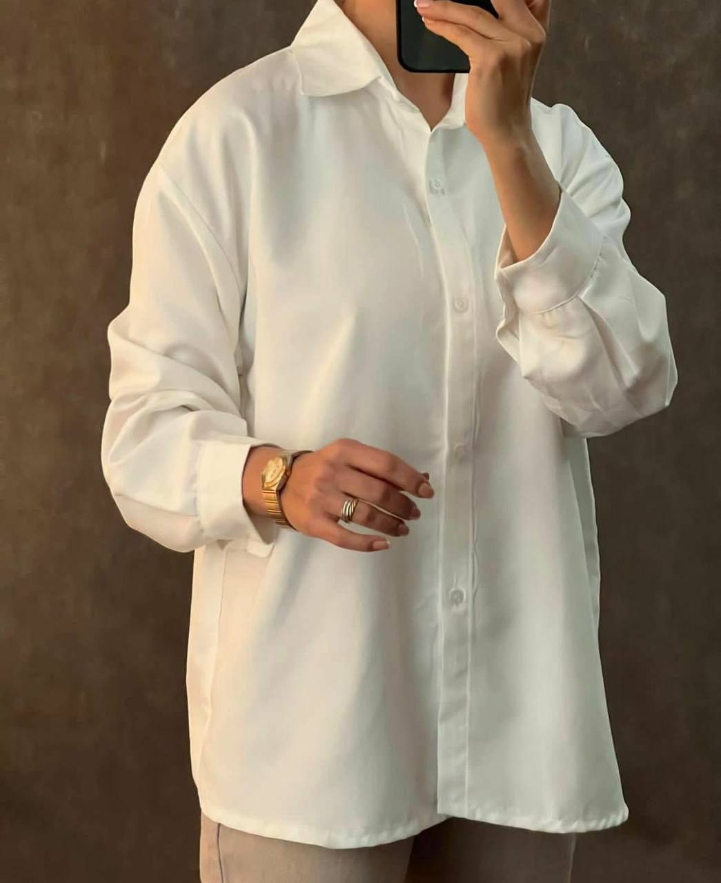 شومیز زنانه بیسیک یقه شکاری پشت بلند
