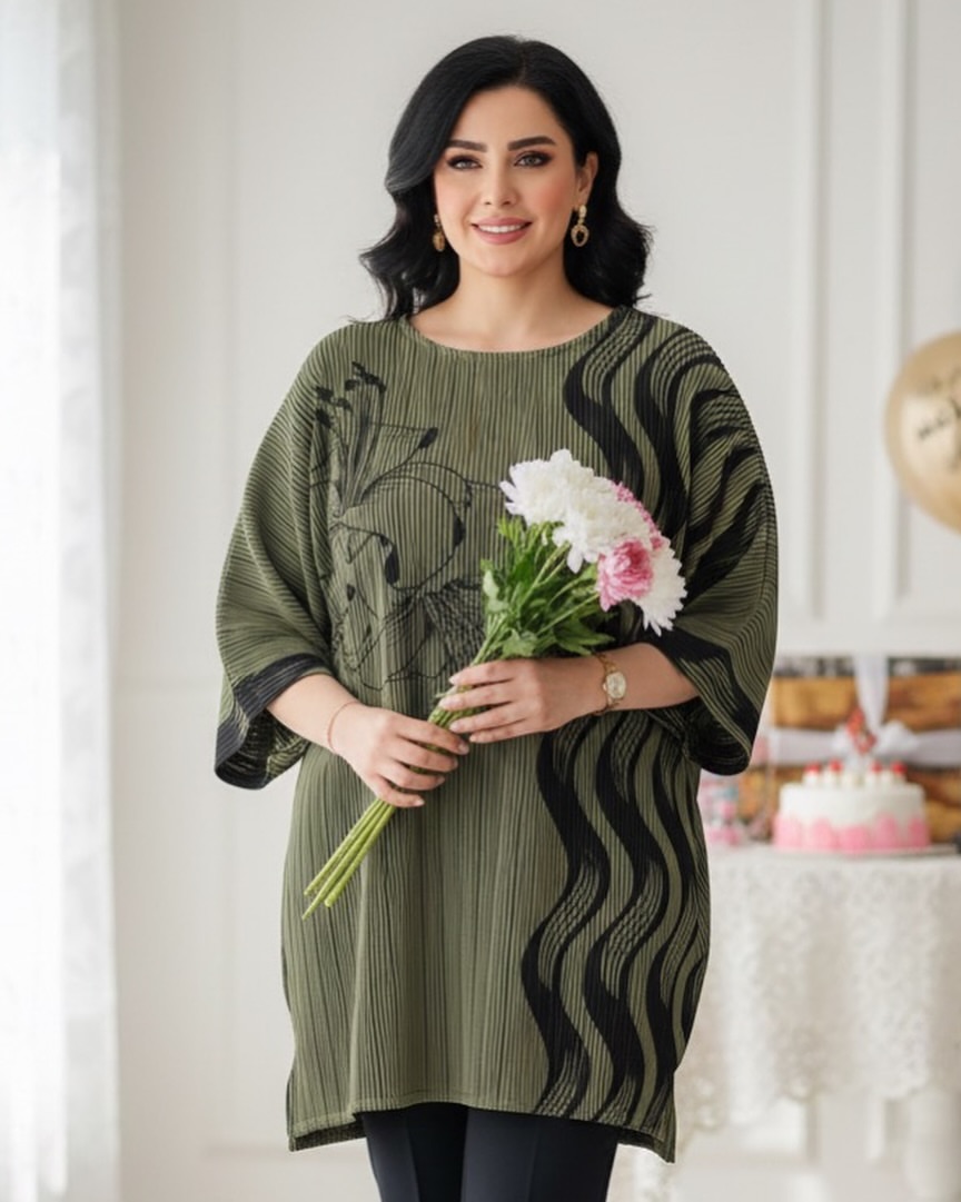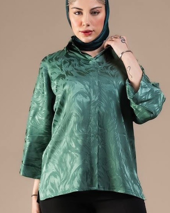 شومیز زنانه ساتن پارچه طرح دار آستین سه ربع