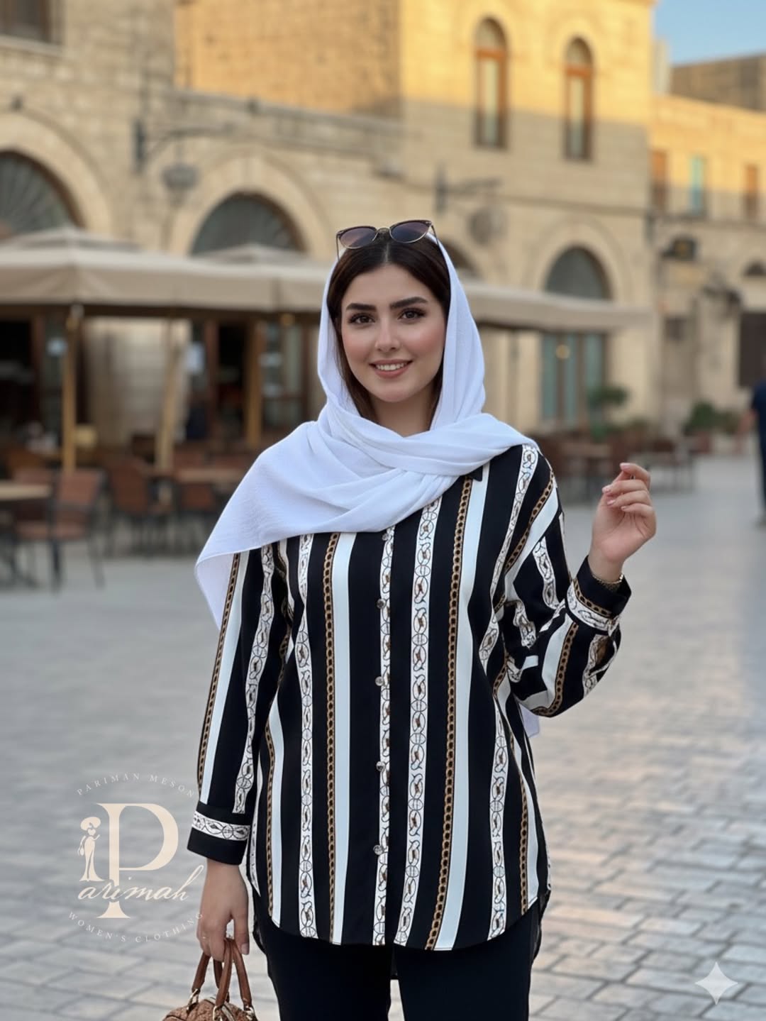 شومیز زنانه مجلسی ساتن طرح راه راه