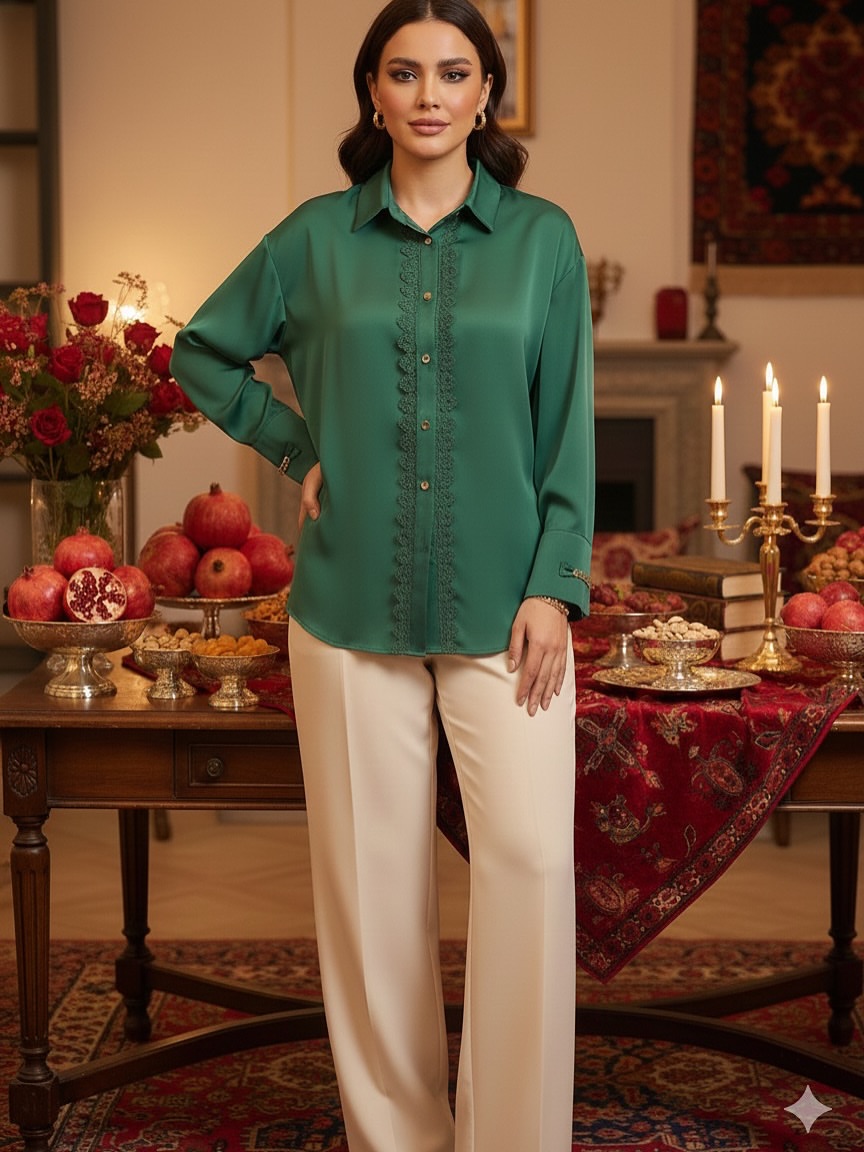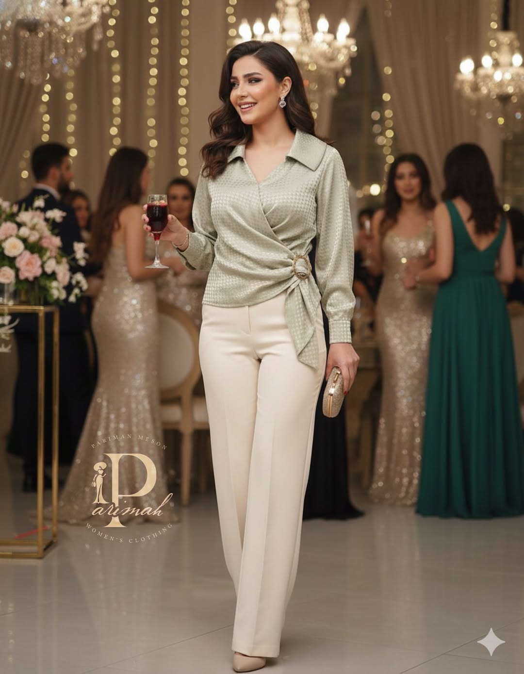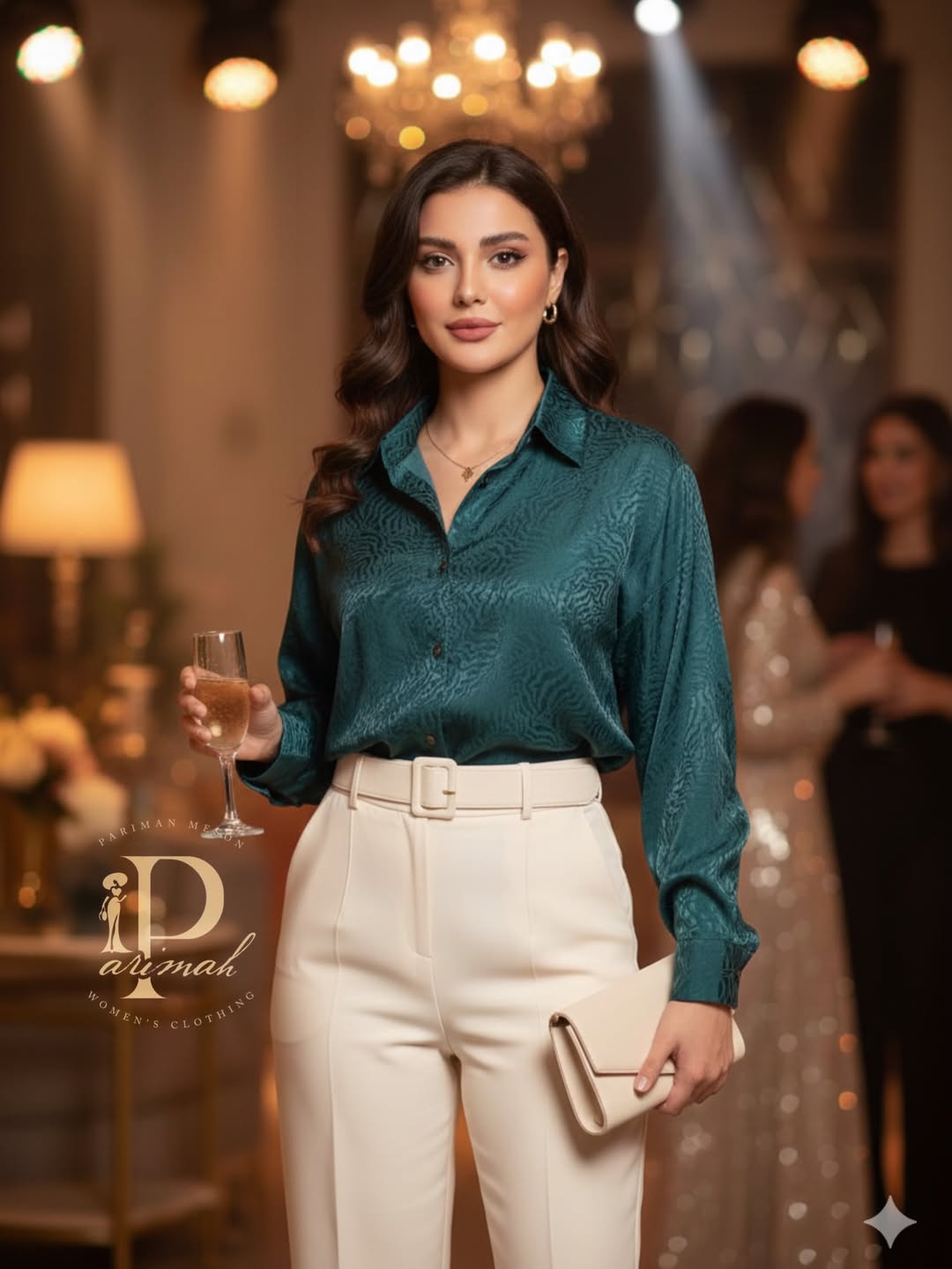 شومیز مجلسی زنانه طرح دار یاخما سایزبندی دار